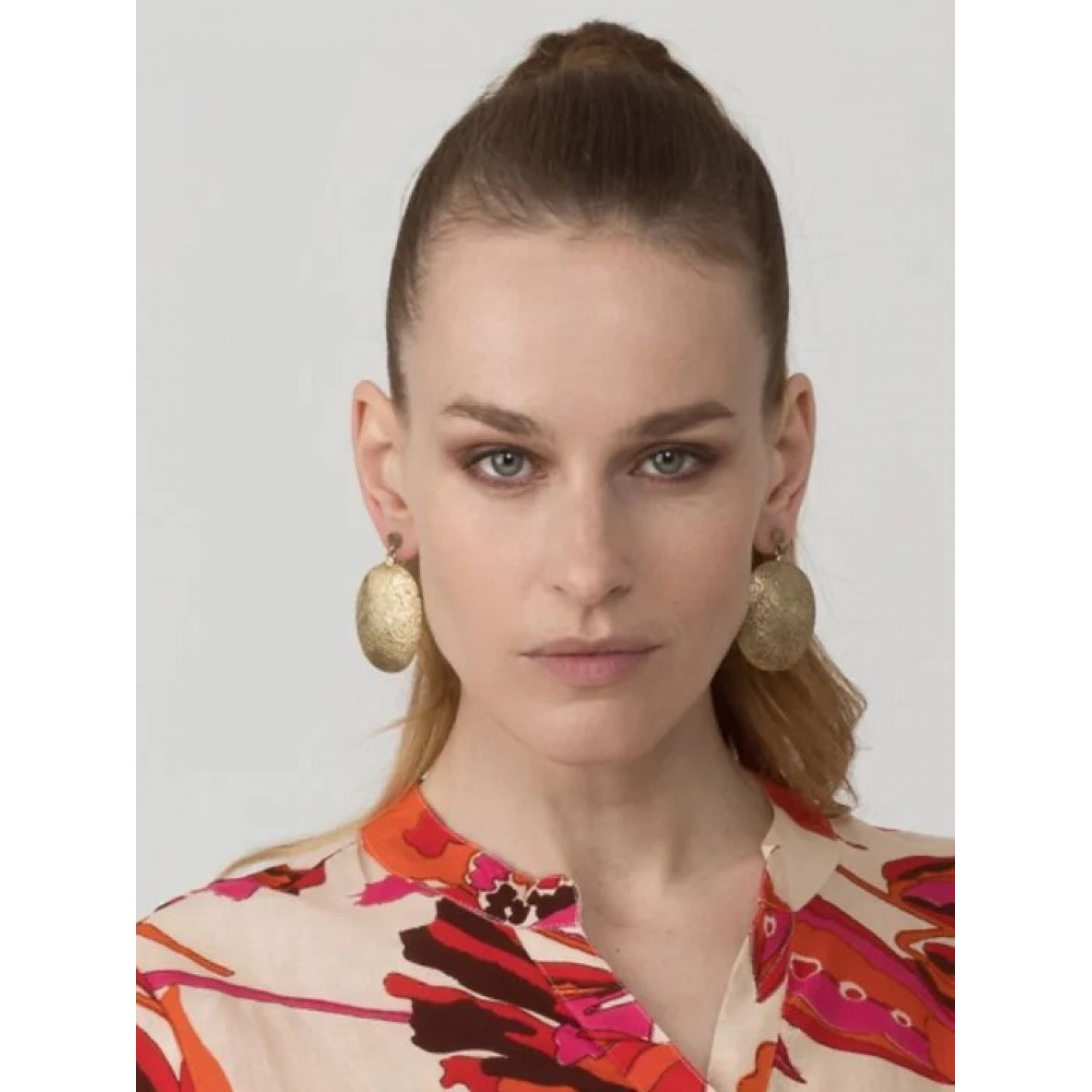 Hammered round shield earrings.